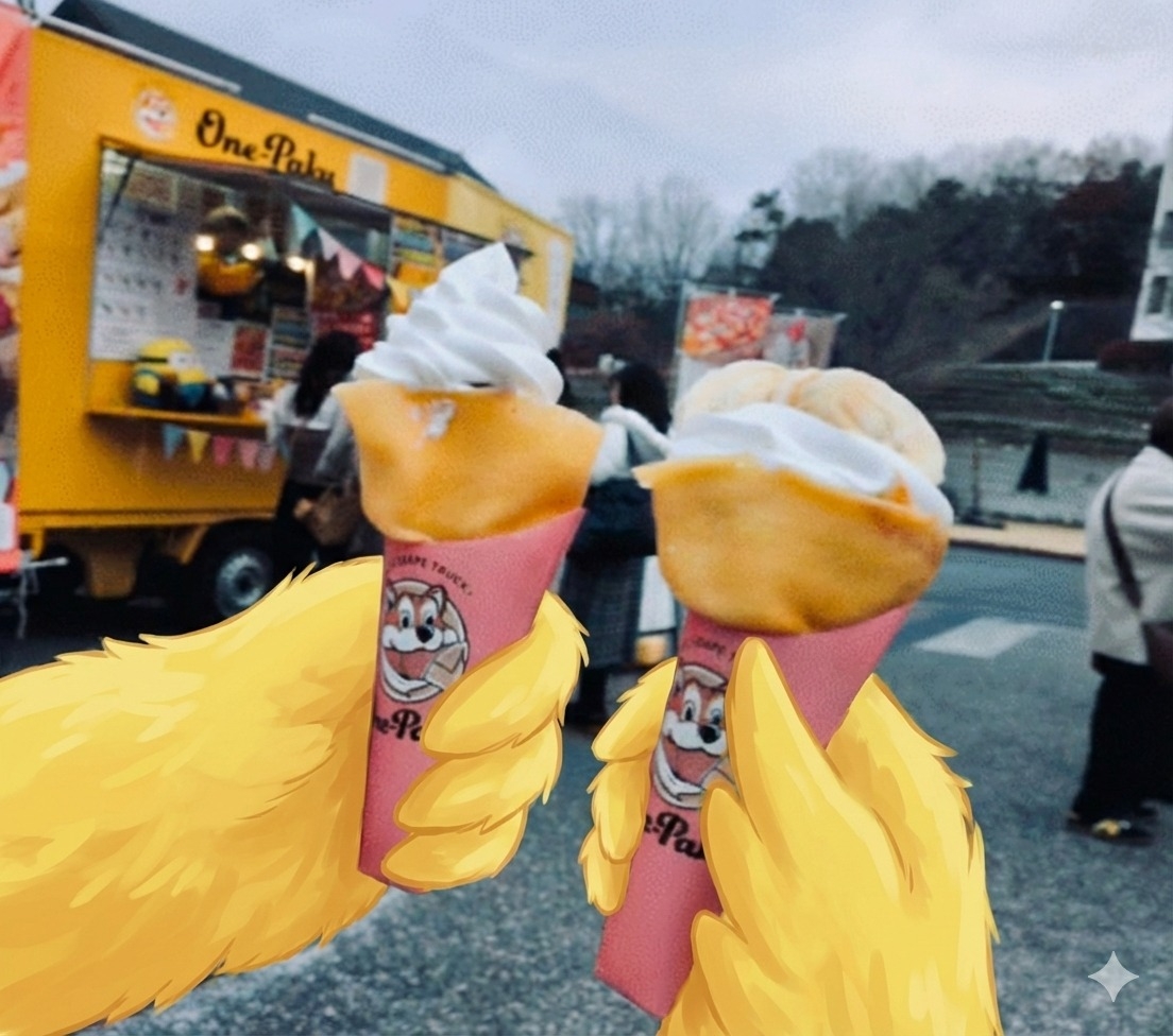 右がキャラメルバナナ、左があんこバターの小さなクレープでとてもおいしかったです🤤
