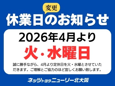 2026年4月より、火曜日と水曜日が休業日となりますので、ご来店の際はご注意ください。