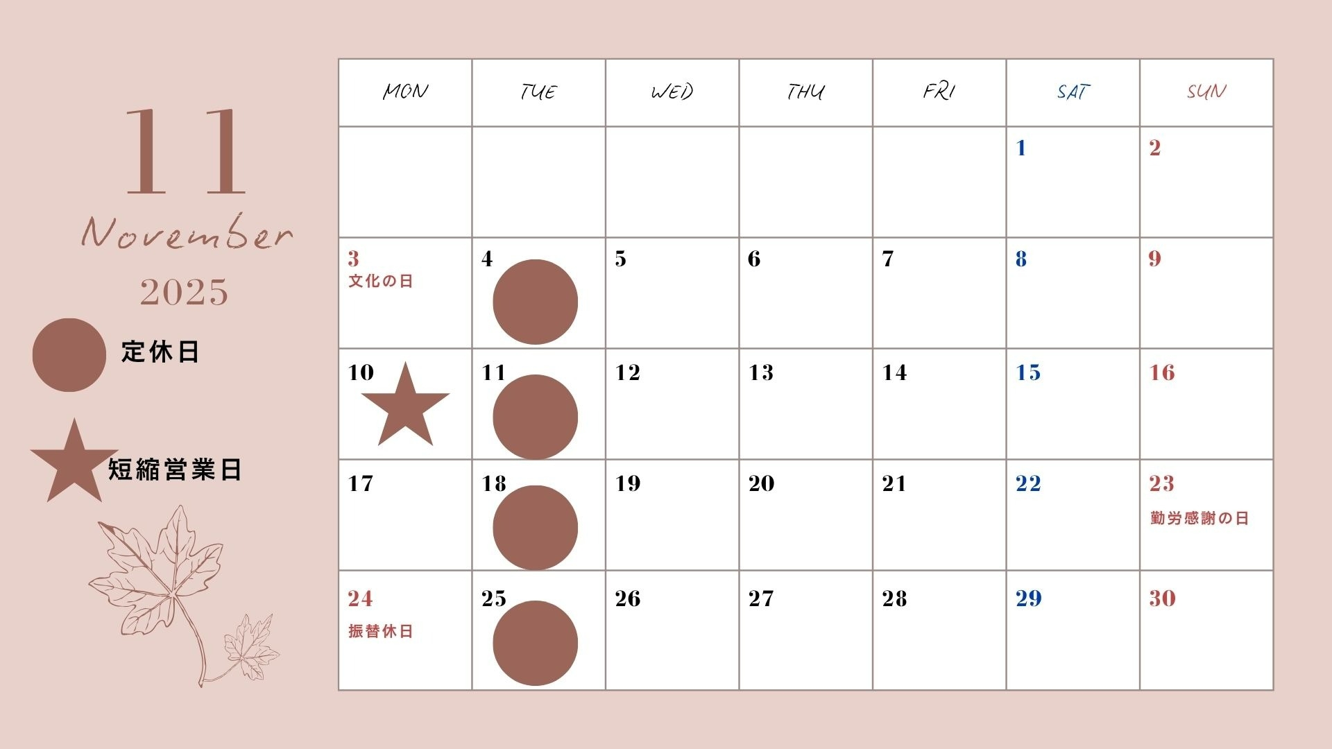 11月営業日のご案内🍁✨&モルック大会のお知らせ&タイヤキャンペーンのご案内🚗