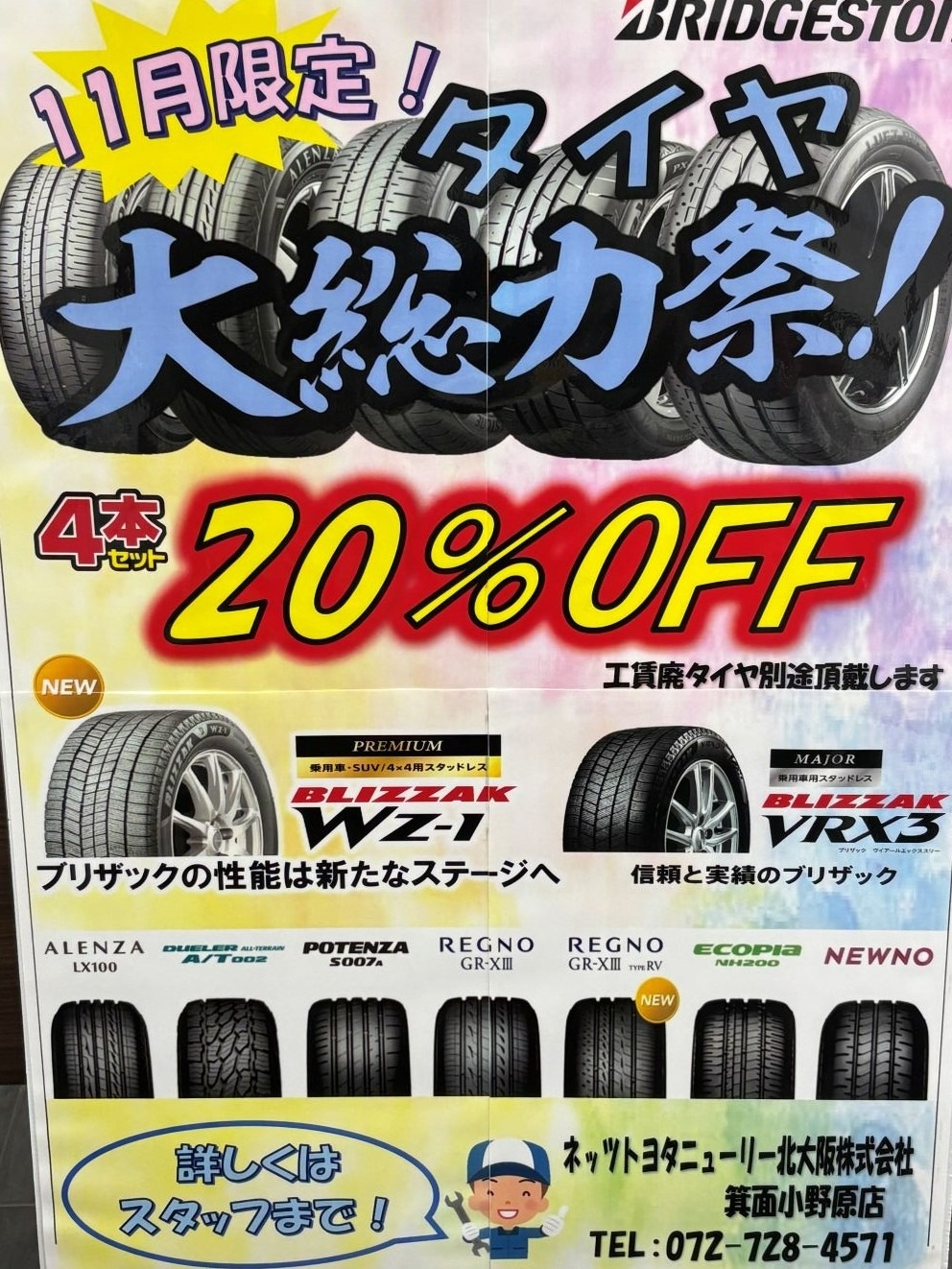11月限定で、タイヤキャンペーンを行います🚗💨✨