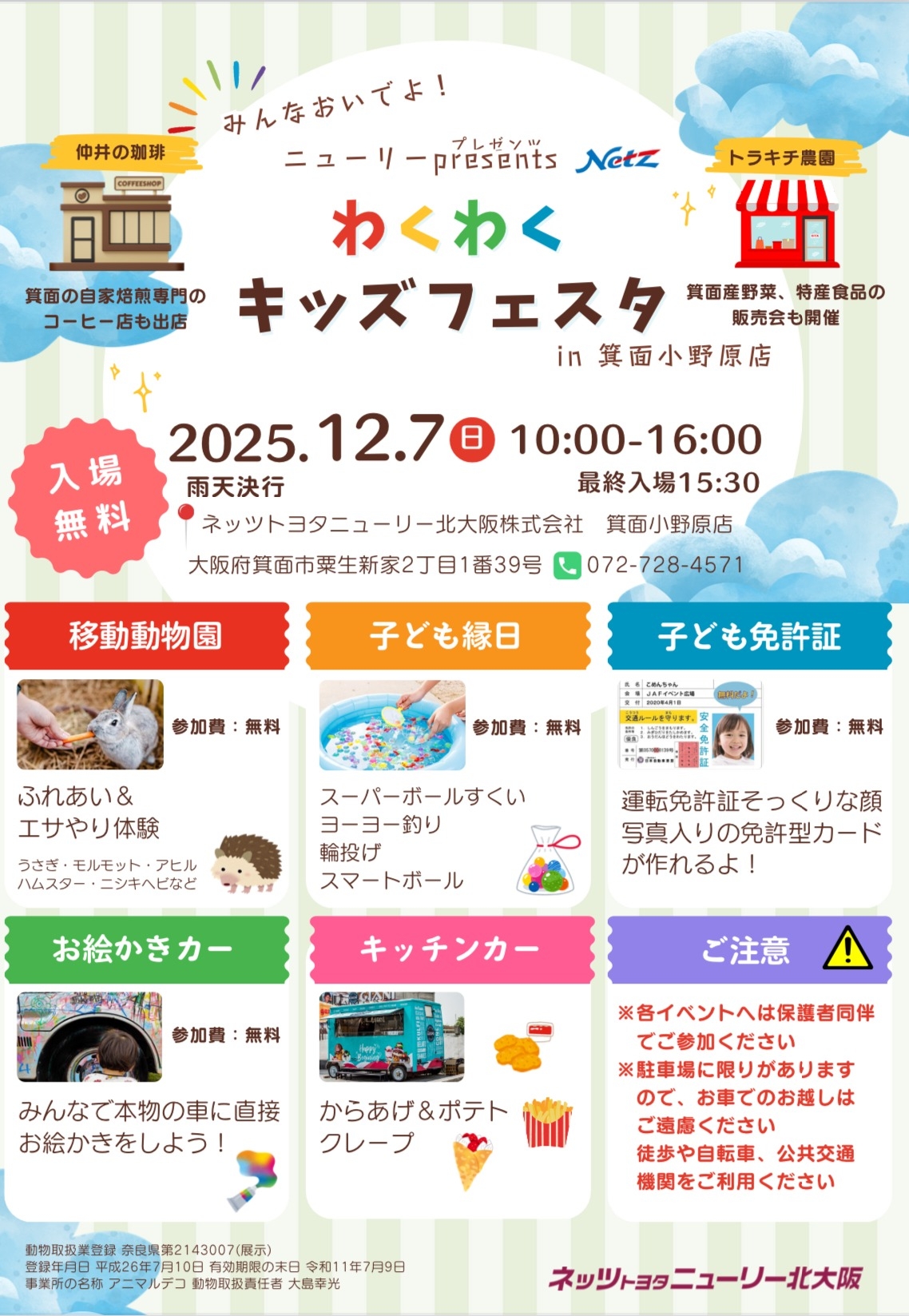 12月7日 店舗イベント (こども縁日&移動動物園)を開催いたします😄✨