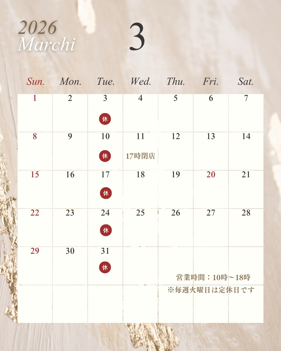 【お知らせ】3月の営業日