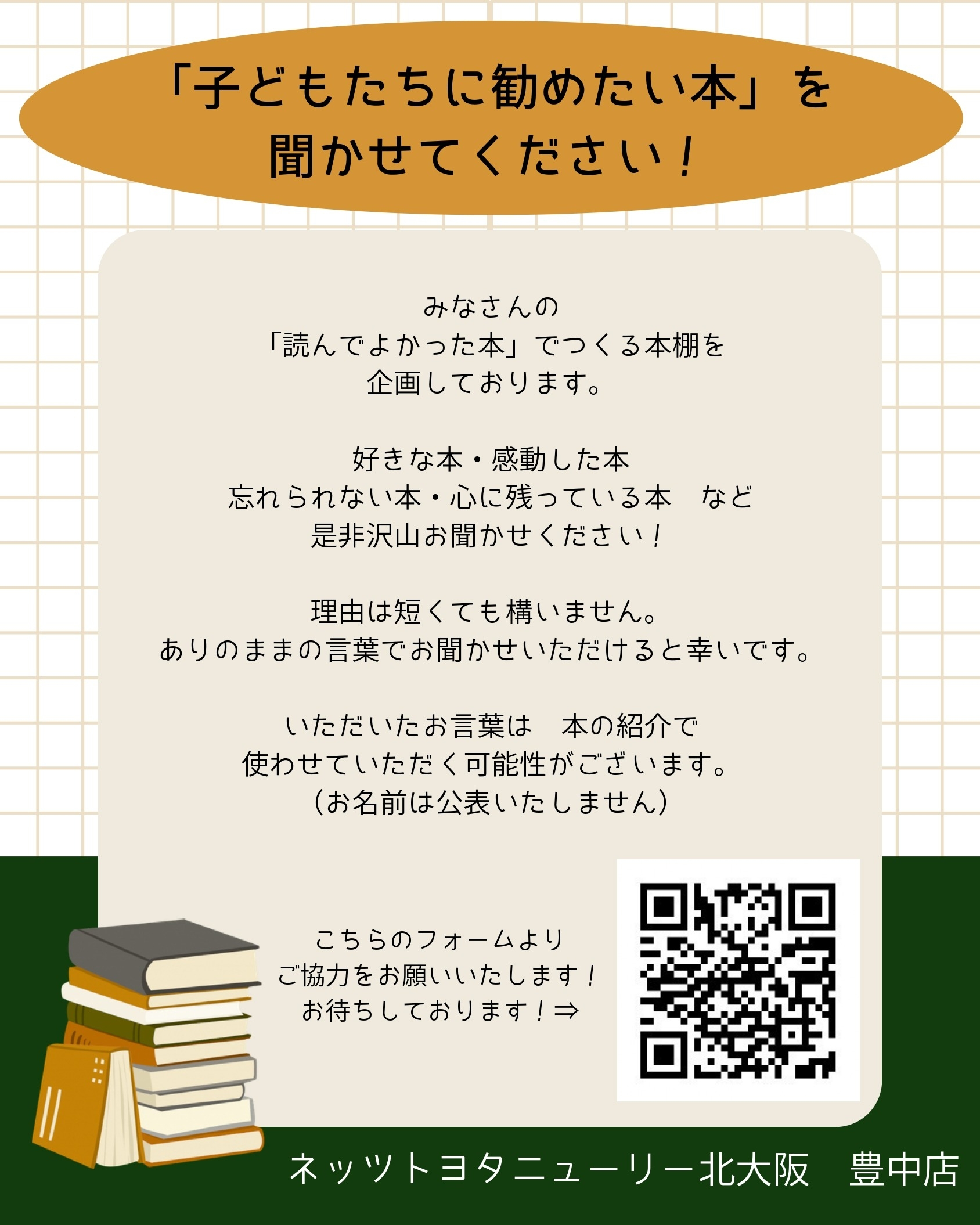 たくさんのお子様により多くの素敵な本をお届けできればと考えていますので、みなさまオススメの本をぜひお聞かせください😊