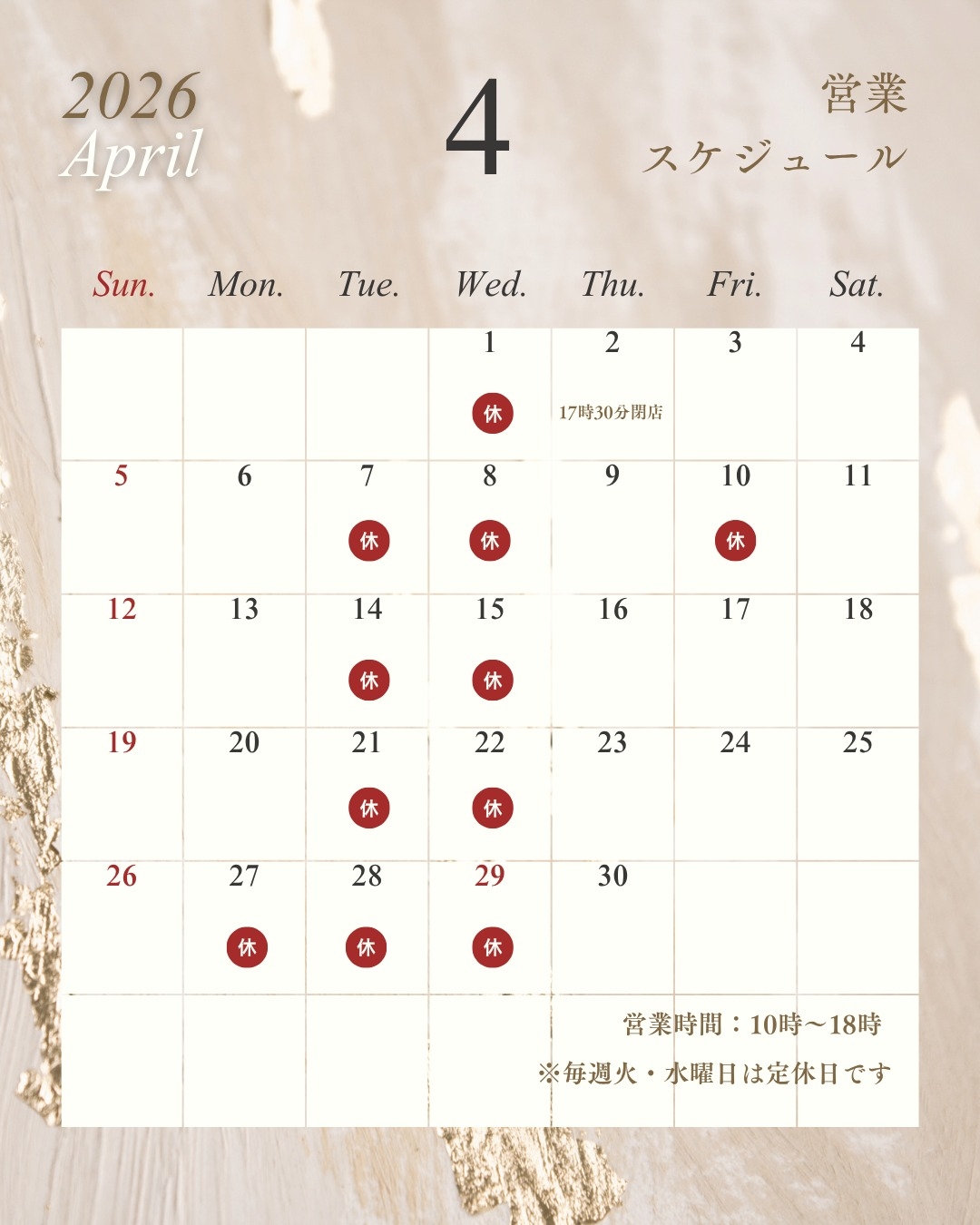 4月から定休日が火曜日と水曜日に変更になります⚠️