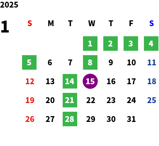 2025年1月の換金日は、1/15(水)です。1/8(水)は社休日となっておりますのでご注意ください。