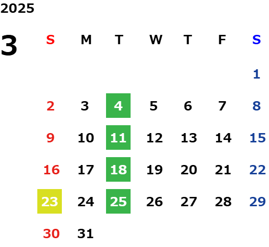 こんにちは☼ 緑ヶ丘店です🚗 3月営業日カレンダーです💡 22日(土)10:00ー15:00 イベント準備による営業時間変更のお知らせです💡 23日(日)10:00ー16:30 店舗イベントによる通常営業お休みのお知らせです。 23日(日)は終日店舗イベントのみの 開催となりますので、 通常営業はお休みとさせていただきます。 ご迷惑をおかけいたしますが よろしくお願いいたします。 また、応急対応につきましては #819をご利用くださいませ。 店舗イベントは、どなたでもお越しいただけます。 是非、ご来場お待ちいたしております💛 また、お子様だけでのご来場はできませんので 保護者の方の付き添いをお願いいたします。