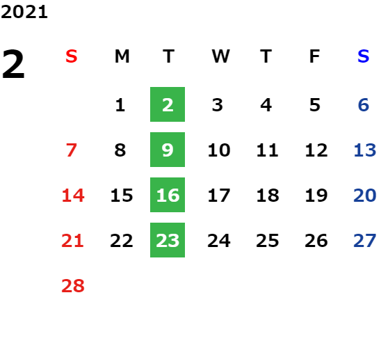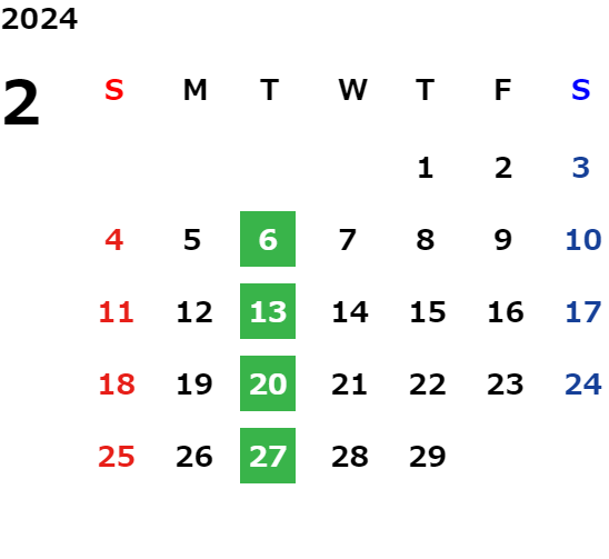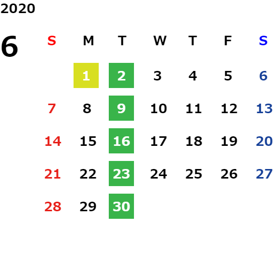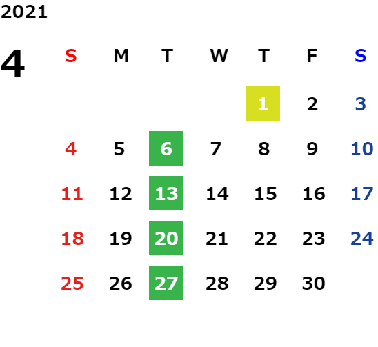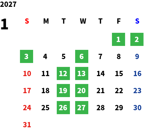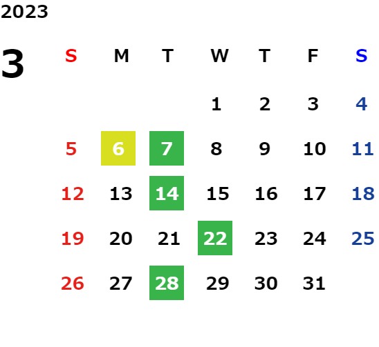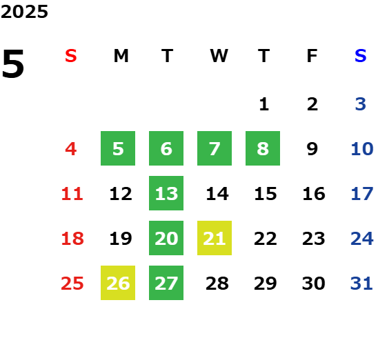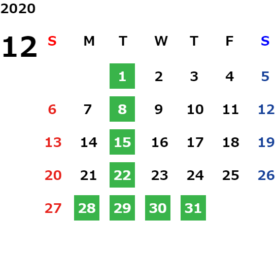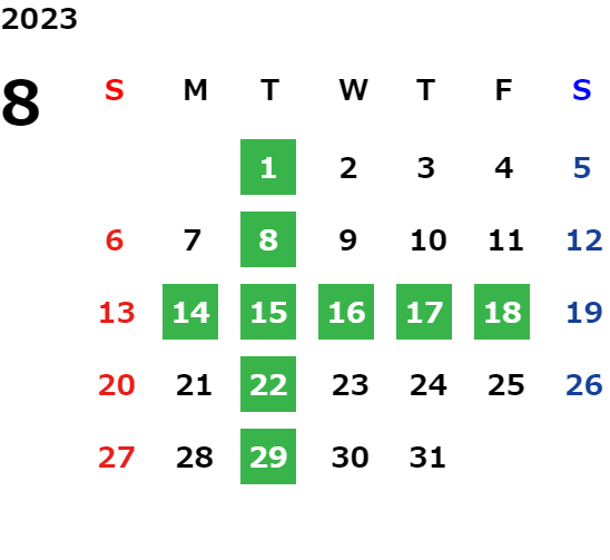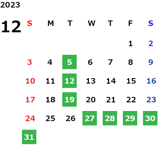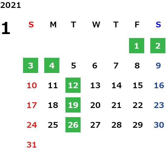 営業日カレンダー