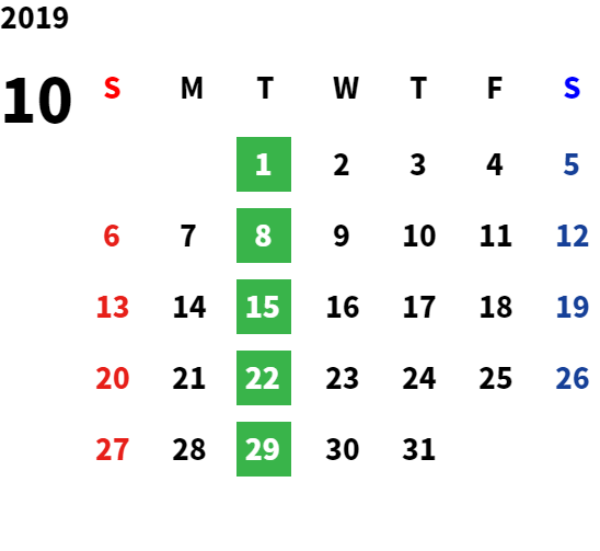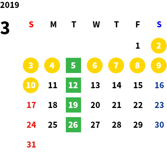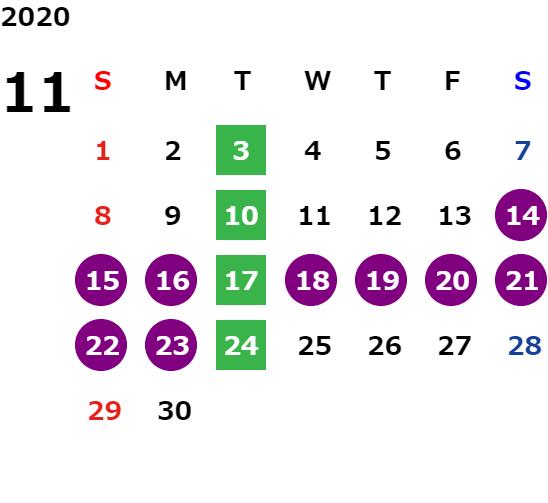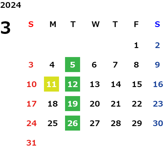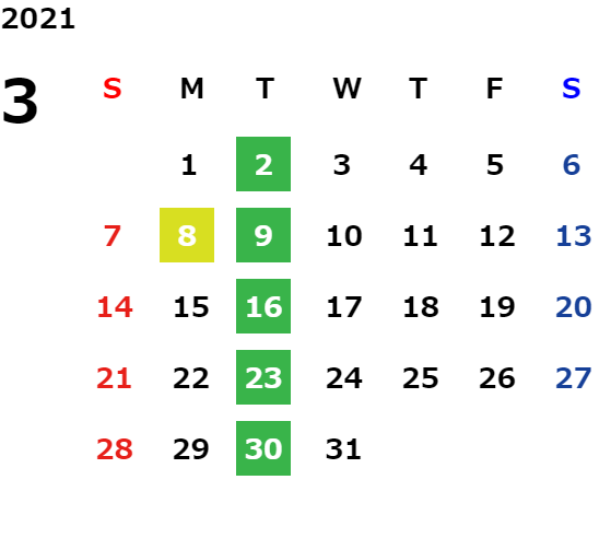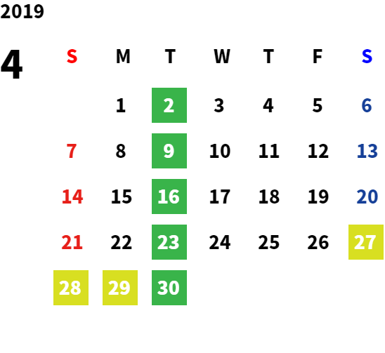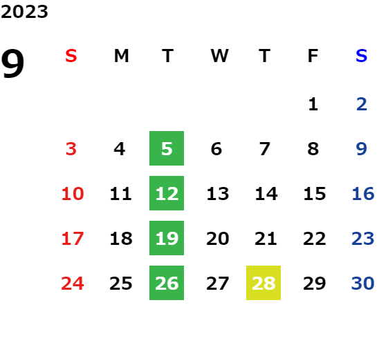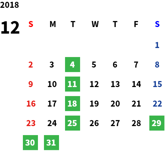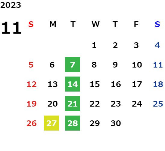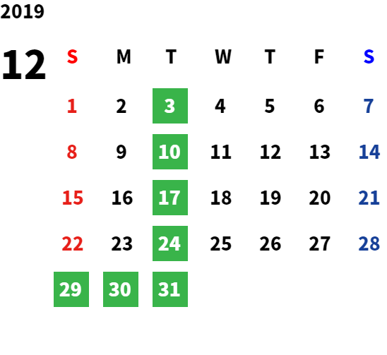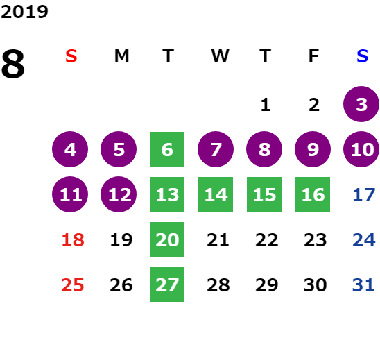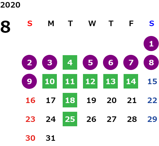 営業日カレンダー